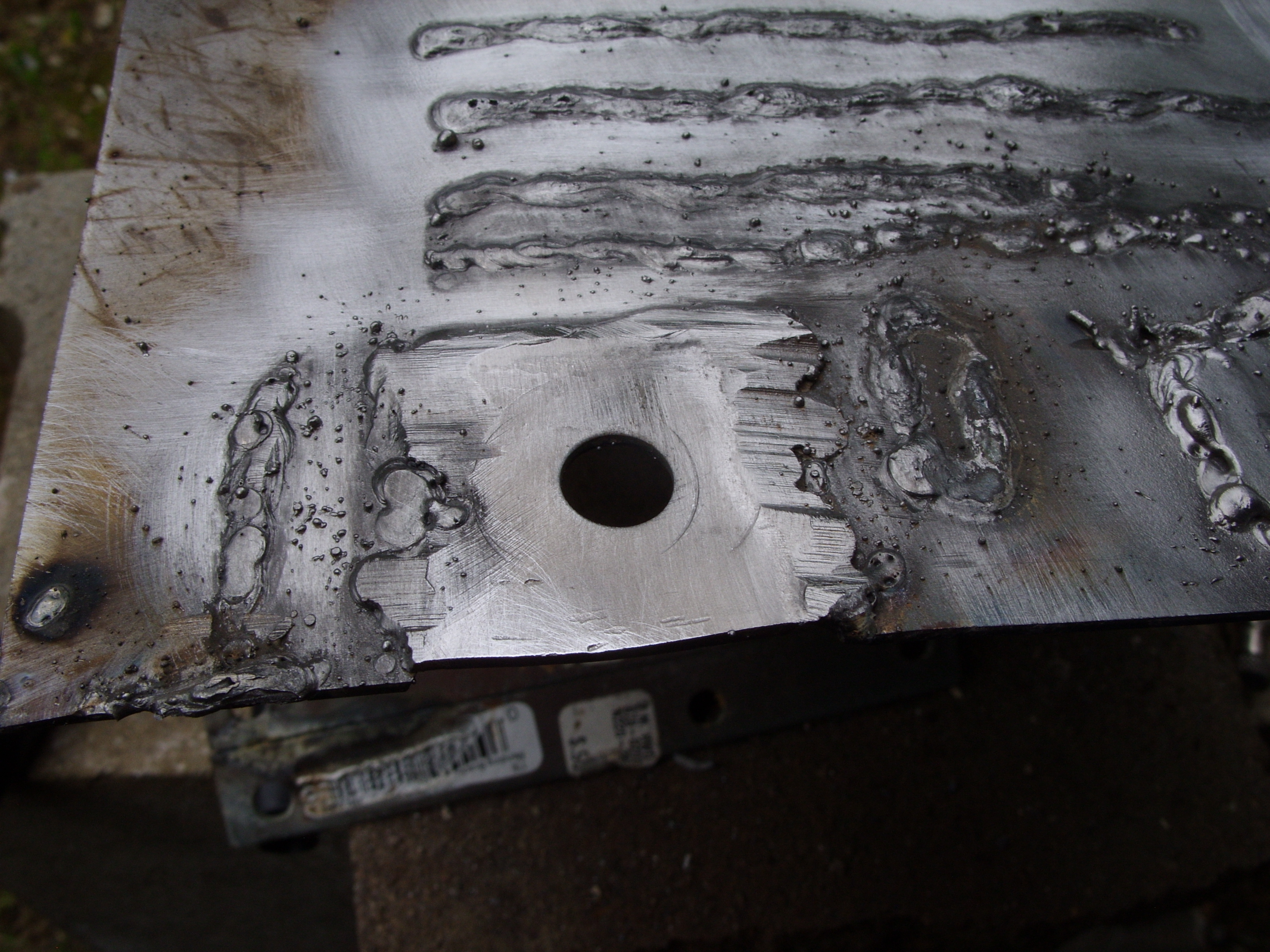 So I don't think there's much point in practicing anymore since I don't think there's anything to learn, and both that washer and that piece of bar stock seem to be quite attached to that sheet metal despite the welds kind of looking like shit, so I guess tomorrow I can work on fixing the mower.